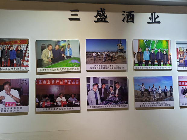 展厅展现了三盛酒业瓶装酒发展的每一步足迹。公司生产的新渠牌精玉、北华、三盛等系列白酒,分为清香、浓香、酱香三种香型,深受广大消费者好评,其中精玉系列白酒,被评为黑龙江省优质名牌产品。